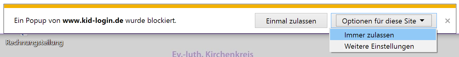 Sollten Sie den Hinweis bekommen, dass ein Popup blockiert wurde, müssen Sie dieses zulassen. Hier am Beispiel des Internet Explorers: