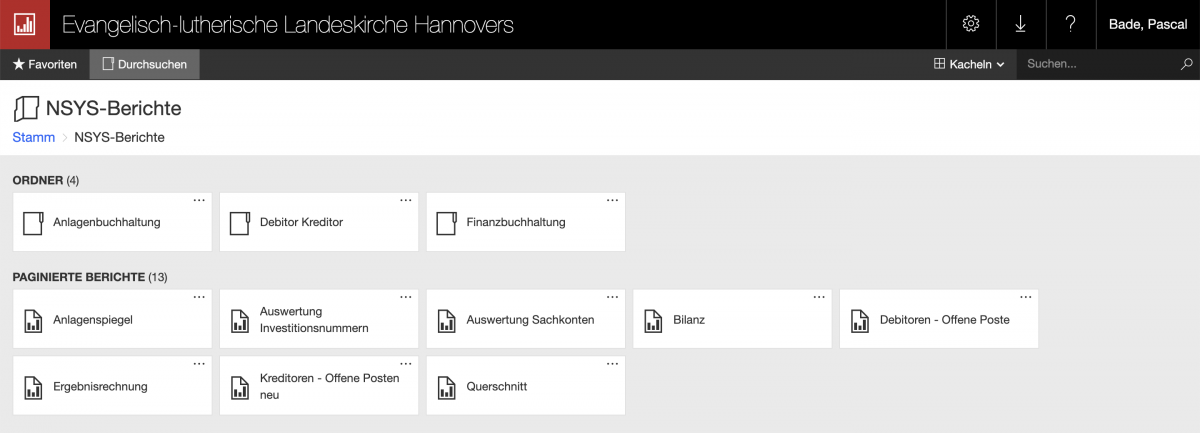 Sie befinden sich anschließend im Berichtsportal von Rechnungswesenprogramm „newsystem“. Momentan stellt Ihnen die Landeskirche folgende Berichte zur Verfügung; Sie können die einzelnen Berichte auswählen, in dem Sie den entsprechenden Namen anklicken:
