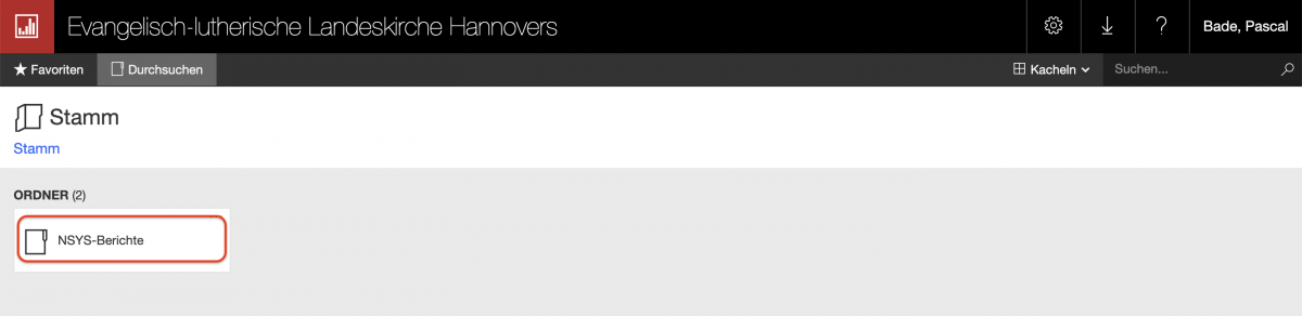 Nach erfolgreicher Anmeldung gelangen Sie zur Startseite der Webberichte. Die Berichte finden Sie, in dem Sie zunächst auf die Kachel NSYS-Berichte klicken: